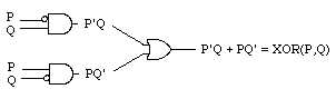 XOR(P,Q) = PQ' + P'Q