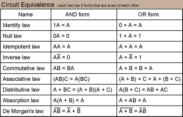 If we use the common symbol 0 for "off" and 1 for "on" note that the output tables
