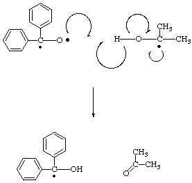 This newly formed radical is now highly reactive, enabling it to offer a hydrogen atom to the oxygen of another benzophenone diradical, thus resulting in the formation of a stable molecule, acetone, as well as another benzhydrol radical.