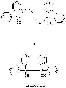 Eventually one benzhydrol radical will collide with another leading to the formation of the final stable product.